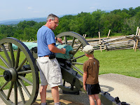 This past Monday we spent the day with my brother, Jeff, and his grandson, Isaac, on a very informative tour of Gettysburg National Park. As a retired Army officer after over twenty years of service and residing nearby in Thurmont, MD, Jeff provided a tour of the park and battle history that cannot by matched by even the best "official guides" of the area. Over a five hour period he took us step by step, day by day through the four day bloody battle while providing little known facts about tactical maneuvers, how decisions were made by Generals from both sides, accounts provided by soldiers who fought there and how local residents were impacted. His information brought the battle's history to life in ways that were, at times, very haunting.